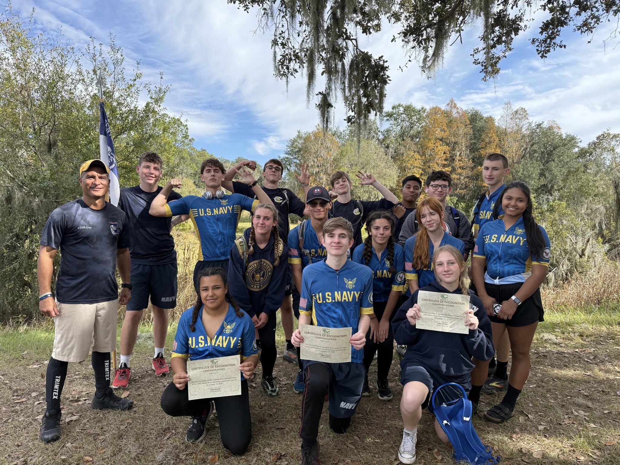 The four team members–three males and one female−each bring a different perspective to the sport. Team captain Kaleb St. Clair is a senior and plans to attend Jacksonville University on a scholarship, then transfer to Embry-Riddle Aeronautical University. Upon graduation, he’ll enter the Navy as a commissioned officer. His ultimate goal is to become a pilot.